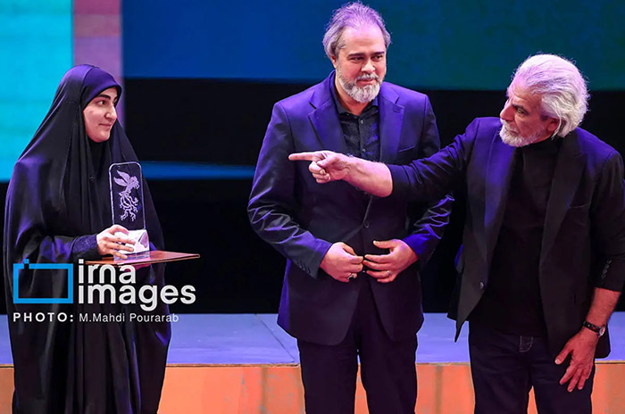 The host then invited Manouchehr Shahsavari, the secretary of the 44th festival, to the stage. Shahsavari had overseen the organization of the event during what many described as one of the most difficult periods in recent cultural history. Shahidifar praised his persistence, noting that despite obstacles and pressures, he had ensured that the festival proceeded without disruption.