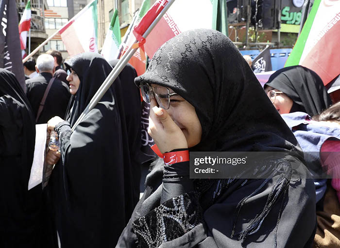 Participants carried large portraits of Ali Khamenei, along with images of his successor, Mojtaba Khamenei. The presence of these images symbolized continuity in leadership and stability during a time of crisis.